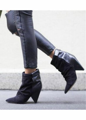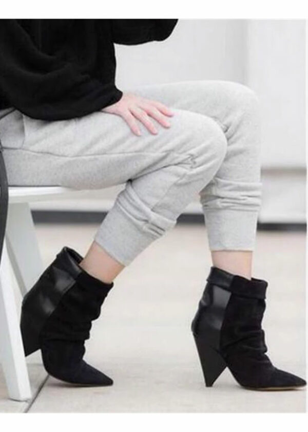 Bottes à talons hauts et à pointes en cuir véritable, collection chaussures compensées