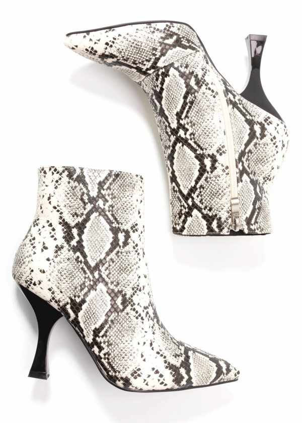 Bout de la chaussure Pointu. Talon Forme Entonnoir. Fermeture éclair. Imitation cuir haute-qualité. Motif Imprimé animal.