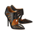 Détails : uni, pointe arrondie, inserts en métal, boucle, semelle en cuir, talon recouvert