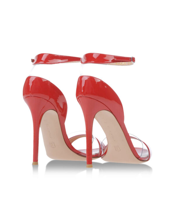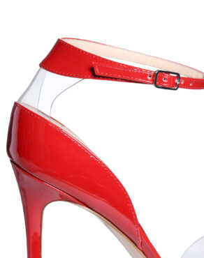 Détails : effet vernis, sans applications, uni, fermeture avec bride à la cheville, pointe arrondie, semelle en cuir, talon stiletto, talon recouvert