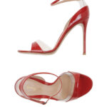 Détails : coton denim, effet vernis, logo, imprimé bicolore, boucle, pointe arrondie, semelle en cuir, talon compensé, semelle compensée en liège