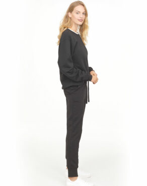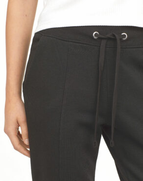 Pantalon jogger en molleton de bonne tenue. Modèle avec élastique et lien de serrage à la taille. Poches latérales. Couture sur toute la hauteur des jambes effilées, terminées par bord-côte. Intérieur doux et brossé.