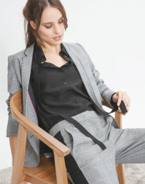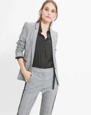 – Poches fendues sur le devant avec galon noir et petite poche au niveau de la poitrine