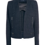 Boléro tissé avec manches bouffantes en fine maille côtelée. Modèle sans boutonnage. Doublé.