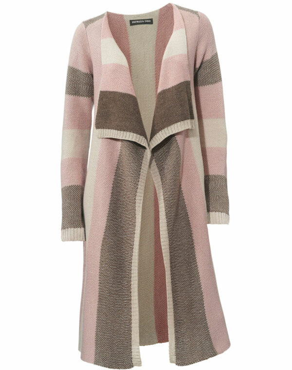 Imprimé à larges rayures, très tendance. Tricot fin doux et agréable. Forme seyante. Sans fermeture. Longueur env 86 cm.