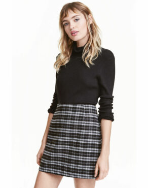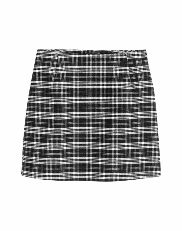 Jupe courte avec fermeture à glissière dans le dos. Doublée.