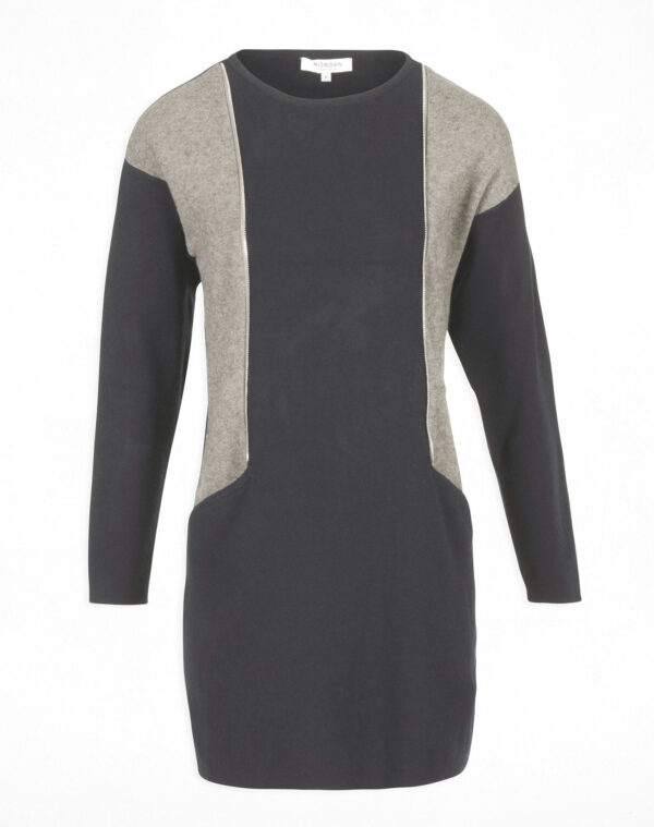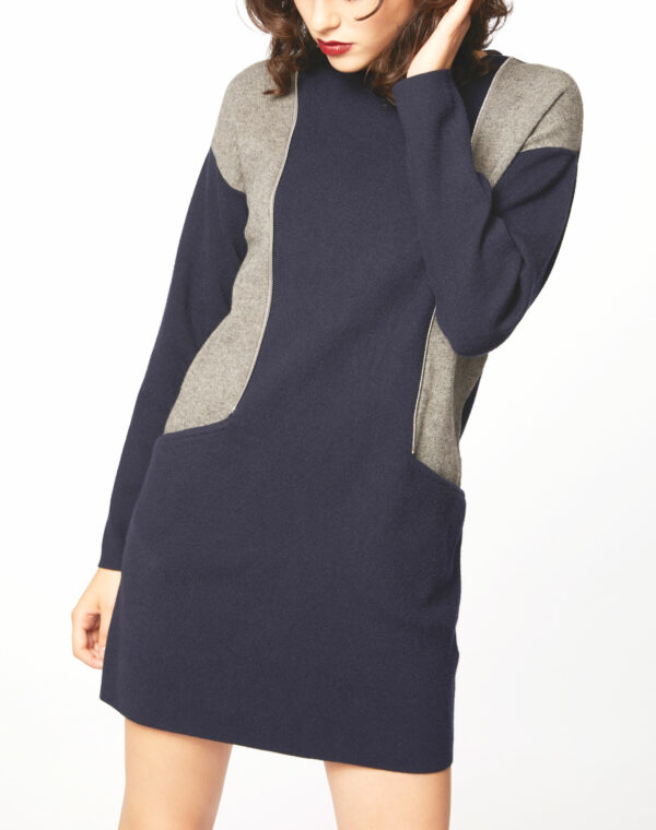 Robe maille droite bicolore détails zips