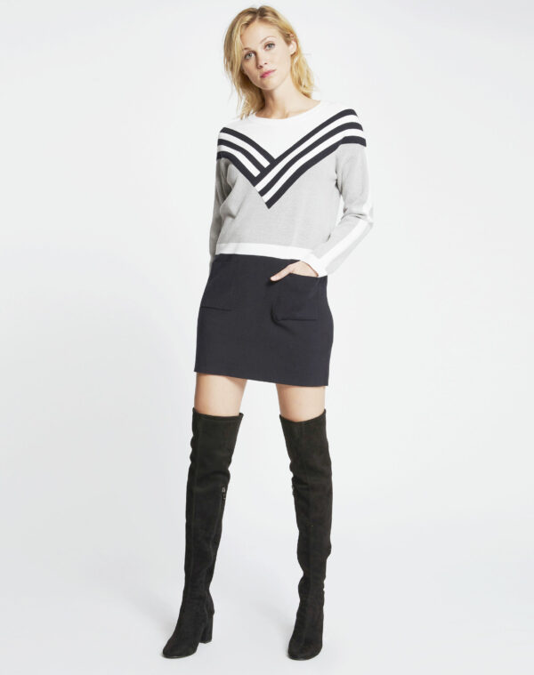 Robe maille courte empiècement rayé