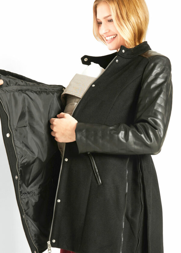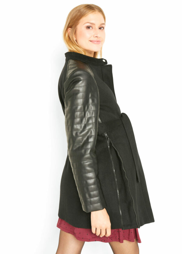 Ce manteau de grossesse est doté d’un lien à nouer qui souligne votre ventre arrondi. Les zips sur les côtés offrent une ampleur supplémentaire pendant la grossesse. Les manches matelassées sont l’atout mode de ce manteau.
