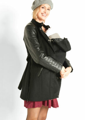 Ce manteau de grossesse mode en imitation laine se porte idéalement du début à la fin de la grossesse et même après. L’empiècement pour bébé sert uniquement à le protéger du vent et du froid et ne remplace en aucun cas le porte-bébé !
