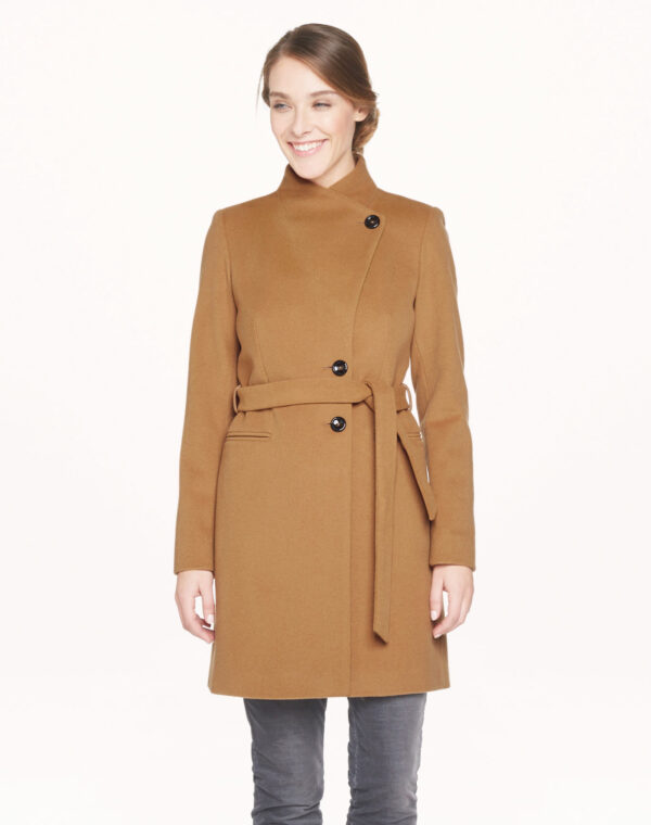 Ce manteau de ville est en velours de laine et cachemire. Il se pare d’un rabat asymétrique avec 3 boutons façon corne, d’un col montant et de 2 poches passepoilées. Doux et épais, il dispose d’une ceinture à nouer à la taille. Longueur : 86,5 cm. Le mannequin mesure 1m78 et porte une taille 36.