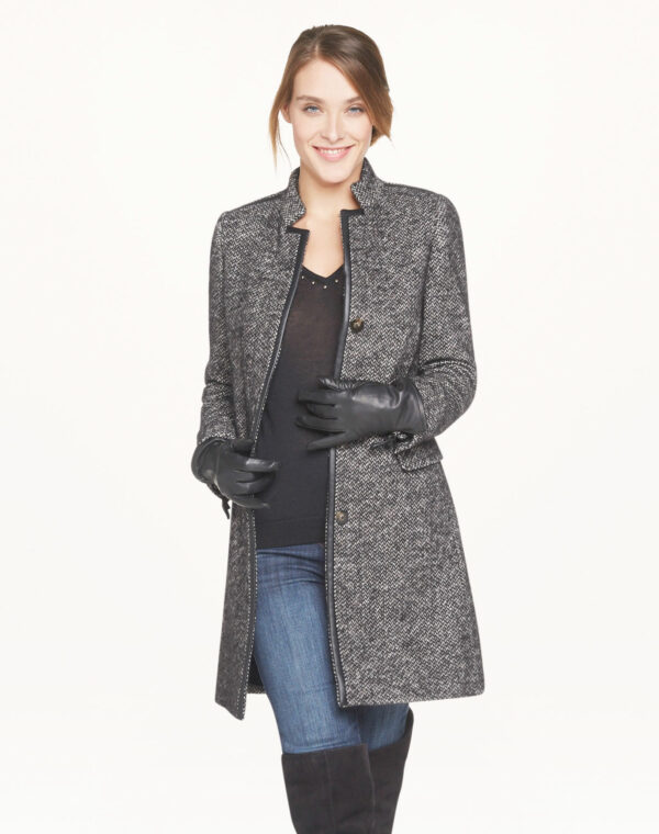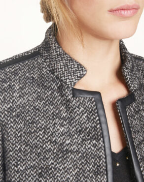 Col montant, coupe ajustée et longueur généreuse : ce manteau de ville épais et texturé cumule les avantages contre le froid ! Son tissage tricolore en laine mélangée s’accompagne de ganses façon cuir, pour gagner en élégance. Longueur : 87 cm. Le mannequin mesure 1m78 et porte une taille 36.