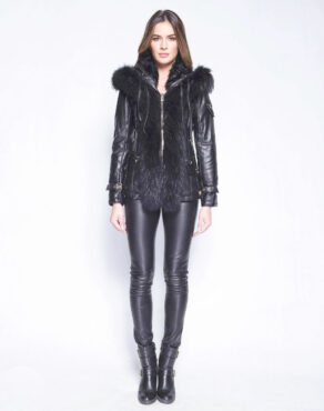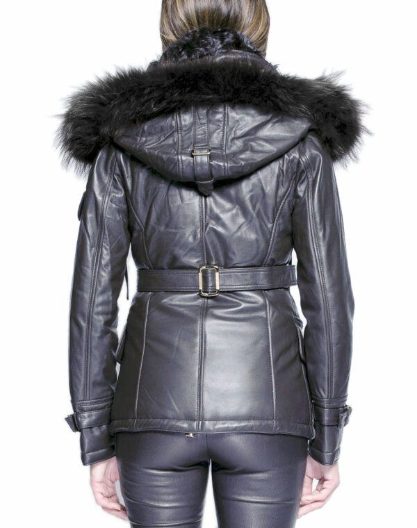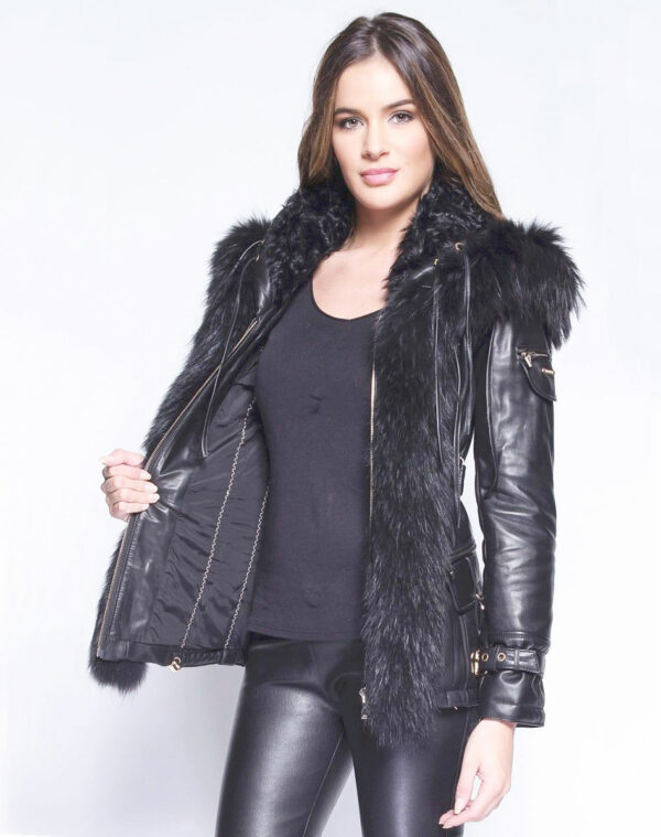 Elle posséde un col rond en fourrure ainsi qu’une capuche dont la bordure en marmotte descend jusqu’en bas des devants du vetement ,ce qui le rend tout simplement magnifique.
