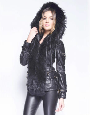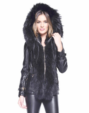 Capuche bordure en fourrure de raccon
