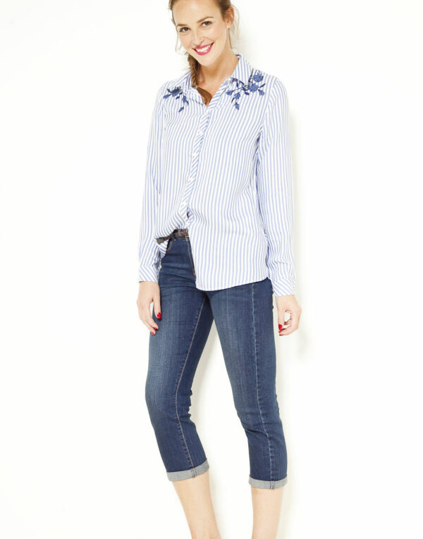 Craquez pour le pantacourt femme en denim et sa coupe slim parfaitement ajustée pour une superbe jambe fuselée ! Ce modèle se pare de 5 poches et se mixe aisément avec un chemisier fluide ou un débardeur court selon l’occasion pour un look mode et printanier.