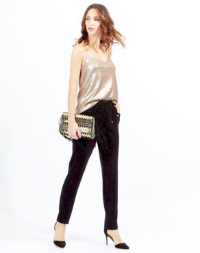 Les styles se mélangent ! On aime la forme droite et chic de ce pantalon à pinces, twisté avec les cordons plus sportswear. Un hit ! Pantalon Brillant, 2 poches, Liens à la taille.