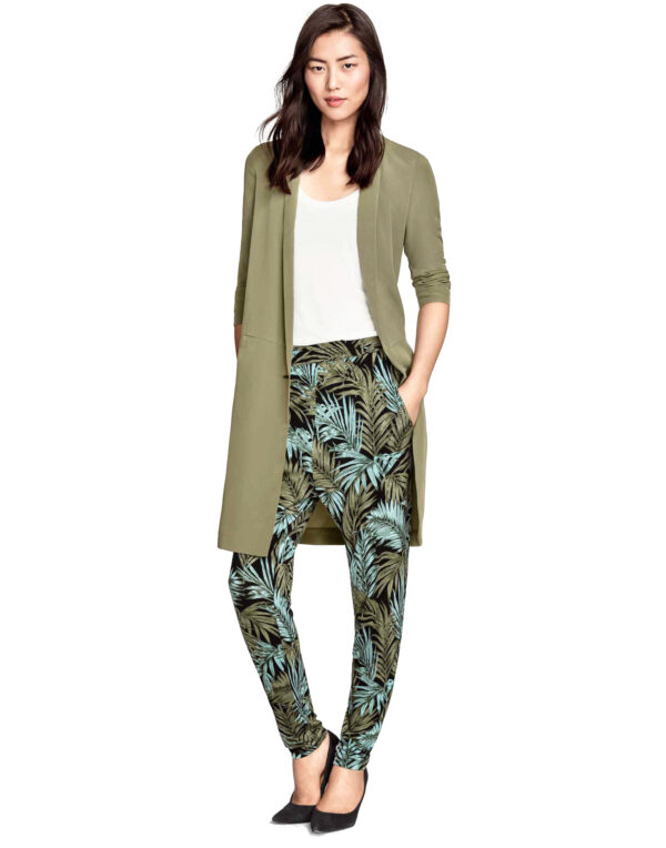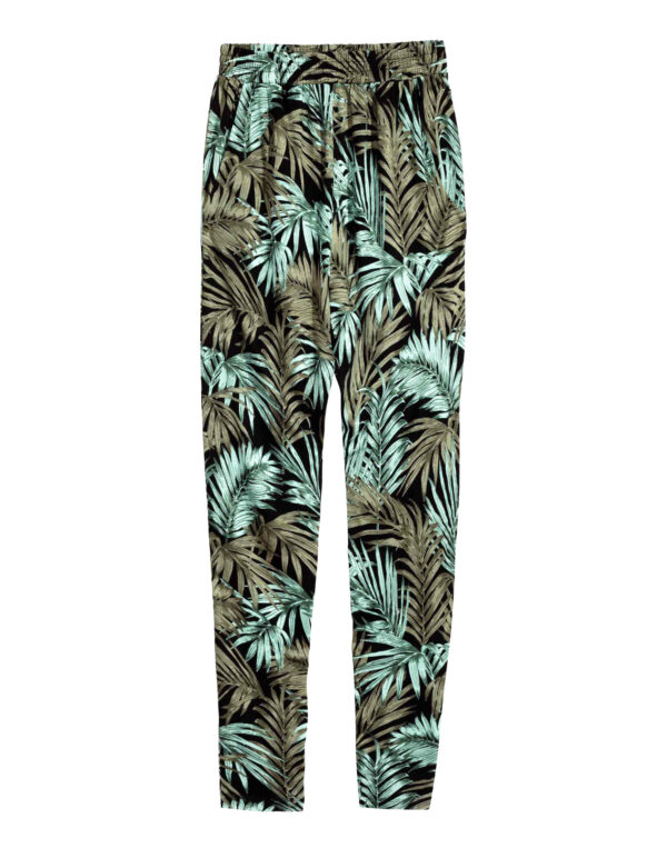 Pantalon en jersey souple avec motif imprimé. Modèle avec élastique à la taille et poches latérales.
