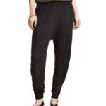 Pantalon en jersey souple avec motif imprimé. Modèle avec élastique à la taille et poches latérales.