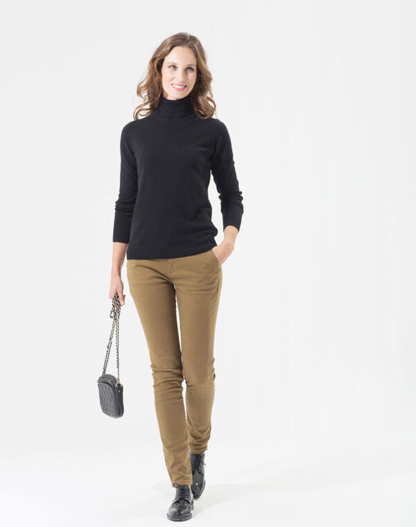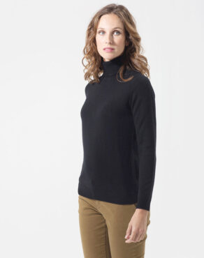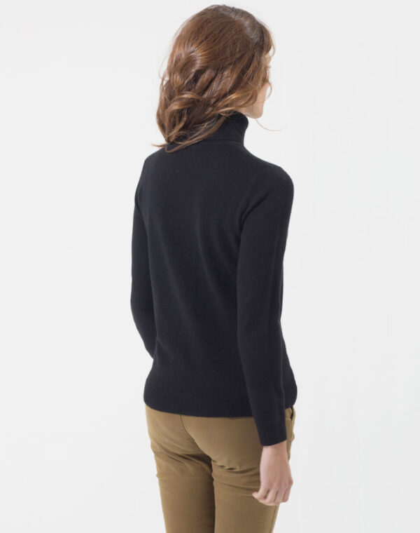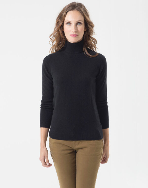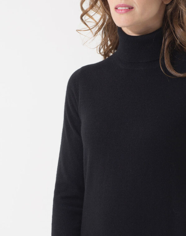 Ce pull noir en cachemire mixe matière ultra chaude et col roulé. Un basique à dégainer dès que le froid se fait sentir.