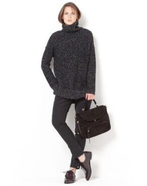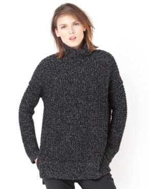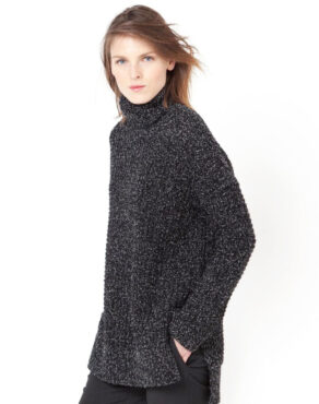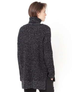 Le pull Coral – CALVIN KLEIN JEANS. Col montant, manches longues. Effet moucheté, Fendu sur les côtés. Pull asymétrique avec dos plus long. Grosse maille 77% laine, 15% acrylique, 8% polyamide.