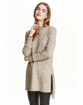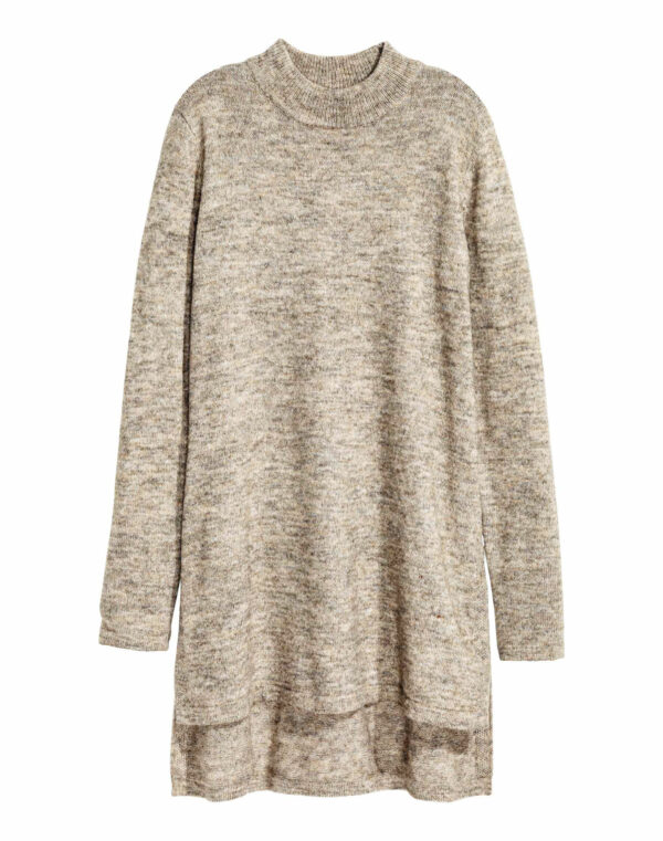 Longue tunique en maille souple enrichie d’une touche de laine. Modèle avec col semi-montant et fentes latérales. Plus de longueur dans le dos.