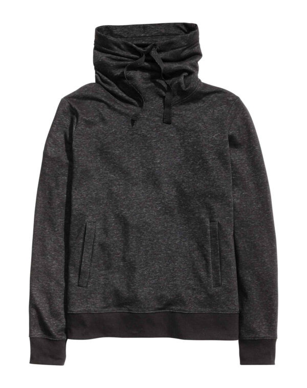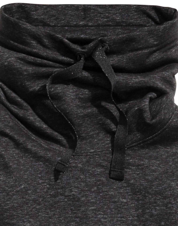 Sweat en molleton avec col cheminée. Modèle avec lien de serrage et poches latérales. Finition bord-côtes à la base et en bas de manche.
