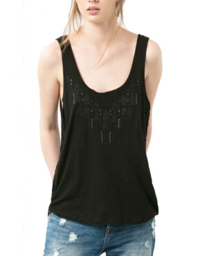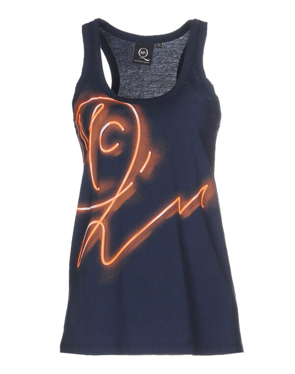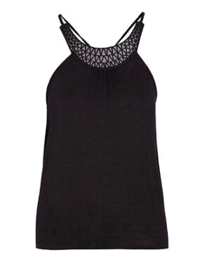 Détails : jersey, uni, col rond, sans manches, imprimé, logo, sans poche.