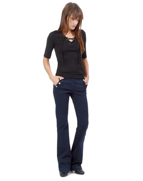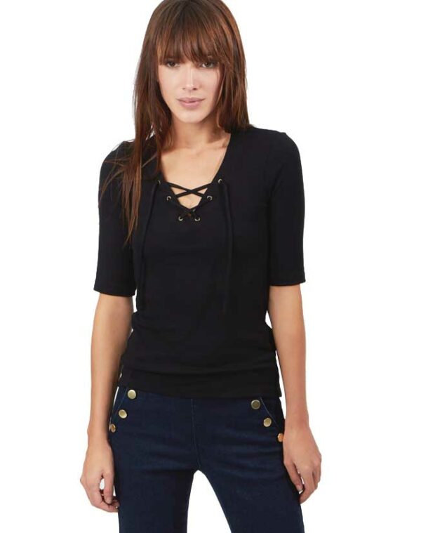 Lacé, le décolleté se dévoile avec subtilité dans ce top en maille côtelé !