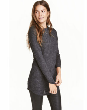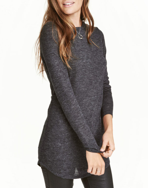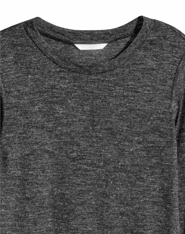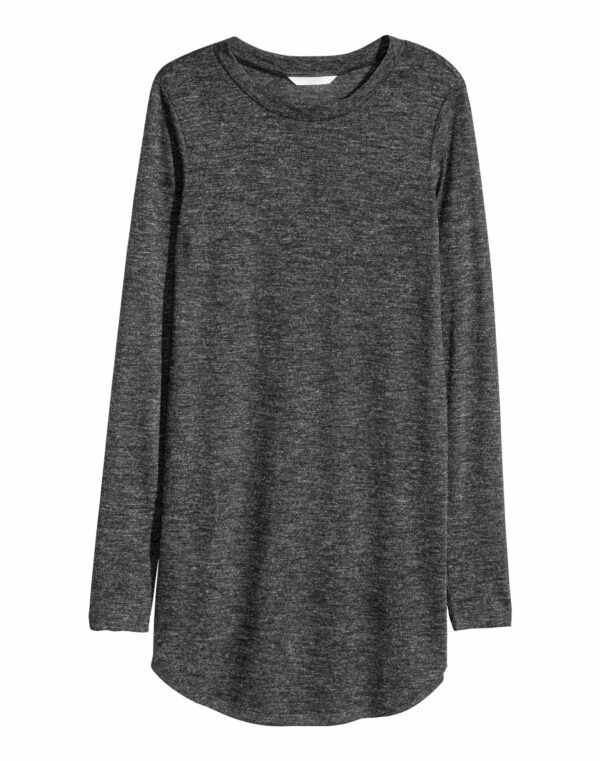 Top long et ajusté en jersey souple. Modèle à manches longues. Base arrondie.