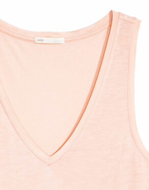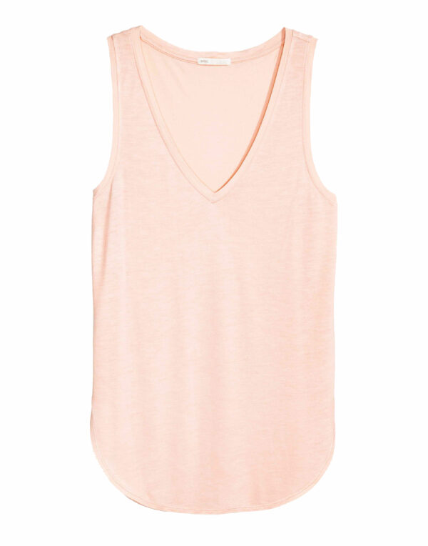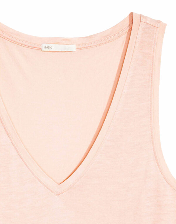 Débardeur en jersey de viscose souple. Modèle sans manches à encolure en V. Base arrondie avec fente sur les côtés.
