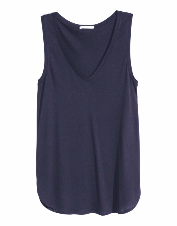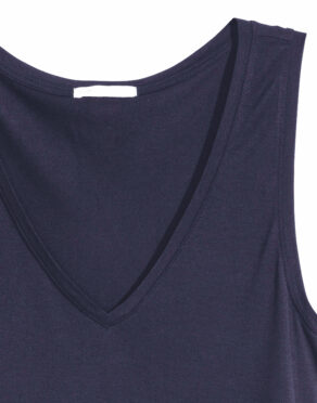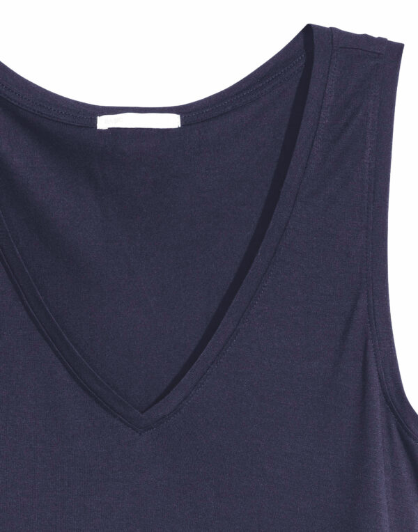 Débardeur en jersey de viscose souple. Modèle sans manches à encolure en V. Base arrondie avec fente sur les côtés.