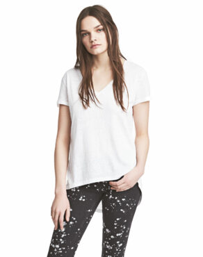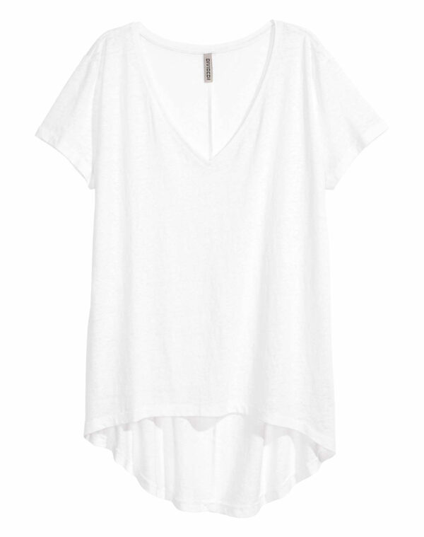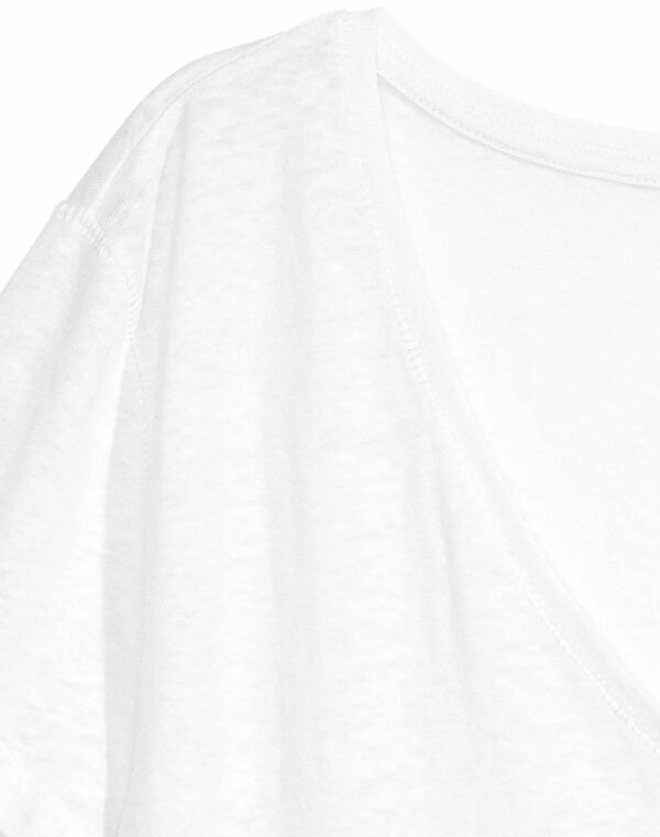 Top à encolure en V en doux jersey flammé. Modèle à manches courtes avec couture centrale dans le dos. Base arrondie avec plus de longueur dans le dos.